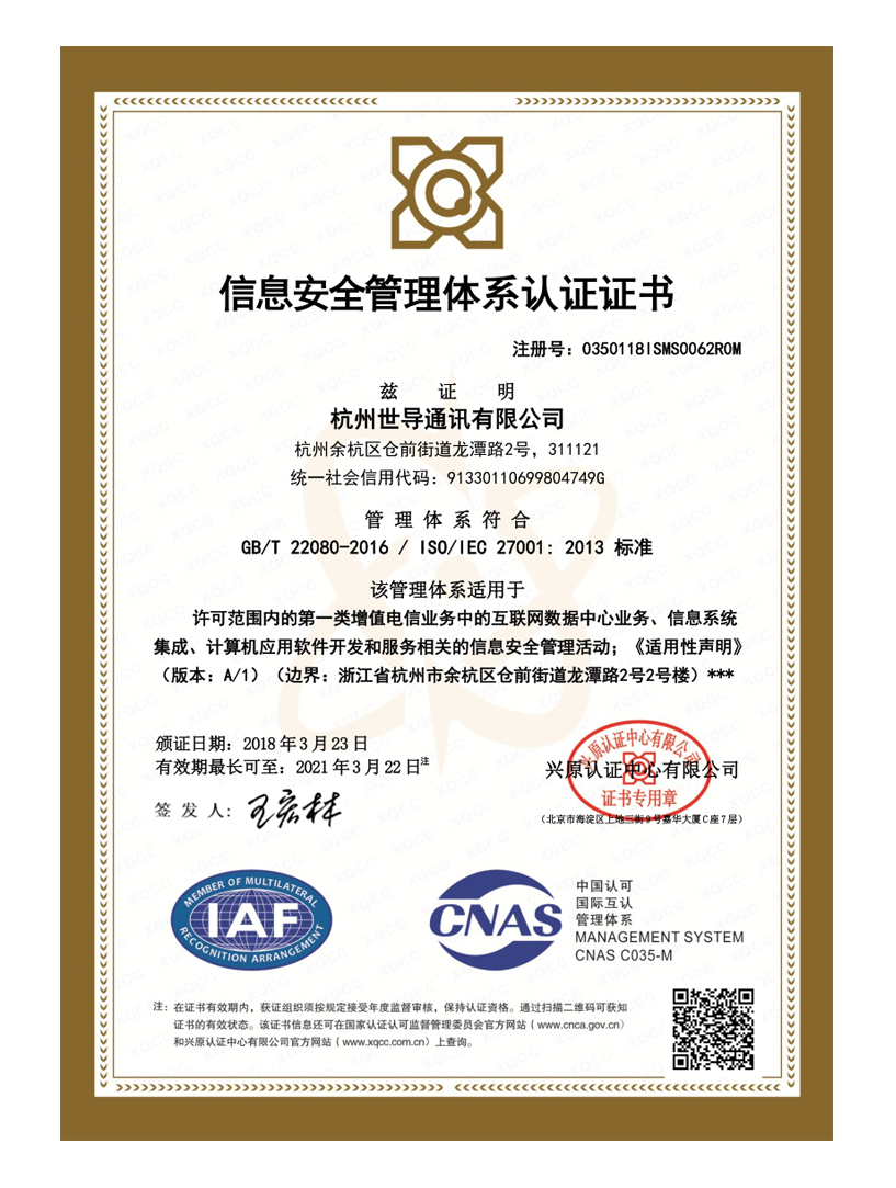 世導(dǎo)數(shù)據(jù)至今年3月起先后通過了ISO9001質(zhì)量管理體系換證、ISO14001環(huán)境管理體系認(rèn)證、ISO18001職業(yè)健康安全管理體系認(rèn)證及ISO27001信息安全管理體系認(rèn)證,從而進(jìn)一步優(yōu)化了包含服務(wù)質(zhì)量、環(huán)境安全、職業(yè)健康安全、客戶信息安全在內(nèi)的全維度標(biāo)準(zhǔn)化世導(dǎo)數(shù)據(jù)中心服務(wù)運(yùn)營管理模式。